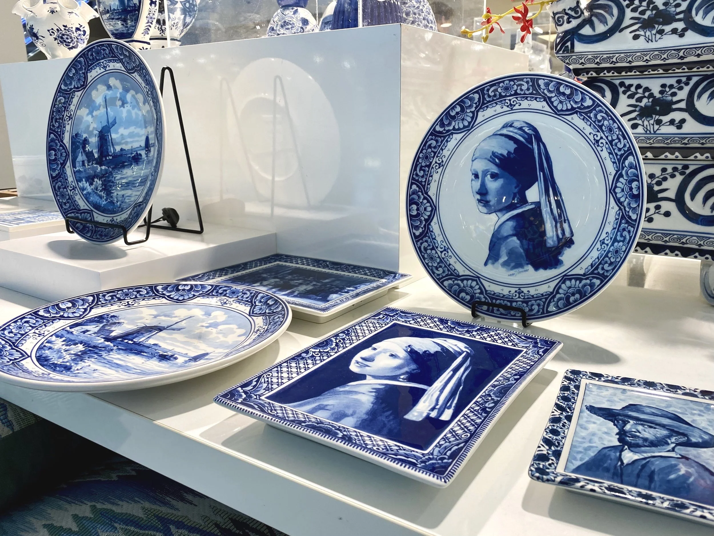 Delft blue pottery made by Royal Delft sold at de Bijenkorf in Amsterdam